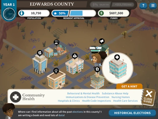Want to try your hand at running your own county government? In Counties Work, you can! Stay on top of resident requests as you develop the local community, make important budgeting decisions and solve crises that pop up along the way.