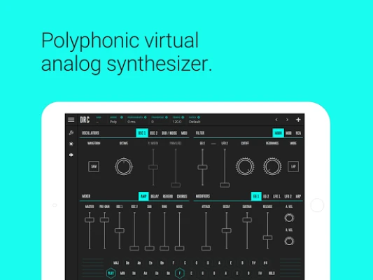 DRC is powerful virtual analog polyphonic synthesizer that recreates the characteristic sound of classic synthesizers like the Roland Juno, Minimoog and many more.