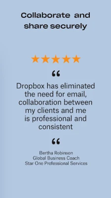 Dropbox is a secure cloud & drive solution leader trusted by Fortune 500 companies for their most sensitive data. Over 14 million paid users choose Dropbox because they know they can count on a company that’s also dedicated to their security and privacy—no matter what they do or where they are. Let Dropbox be your all-in-one file storage, file organizer, file transfer, and file sharing solution for all your devices.