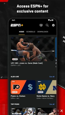 Watch thousands of live events and shows from the ESPN networks plus get scores, on-demand news, highlights, and expert analysis. With an active subscription, access ESPN+ content featuring live sports, exclusive originals, and much more.