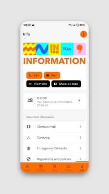 Welcome to the app of the introduction days of the University Eindhoven of Technology. This app is a guide during the Introduction Week, the Master Kick-Off and the Welcome Day Internationals. The personal program, general information, an overview of all associations and organizations can be found in the app and it also contains the necessary functions for these weeks such as registering for certain program parts and workshops. With the app it is possible to charge your wristband, which is linked to your personal account. With this wristband drinks can be paid at the bar.