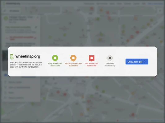 Find wheelchair accessible restaurants, cafes, toilets, shops, cinemas, parking lots, bus stops and much more. The Wheelmap and OpenStreetMap communities have already rated about 1 million places! Ratings for another million places come from a growing number of partners such as Foursquare City Guide, Jaccede, AXSMap, HERE, Parkopedia, bahnhof.de, Mapy bez barier, etc. All in all, you can find accessibility reviews of more than 2,000,000 places on Wheelmap! More entries are added daily.